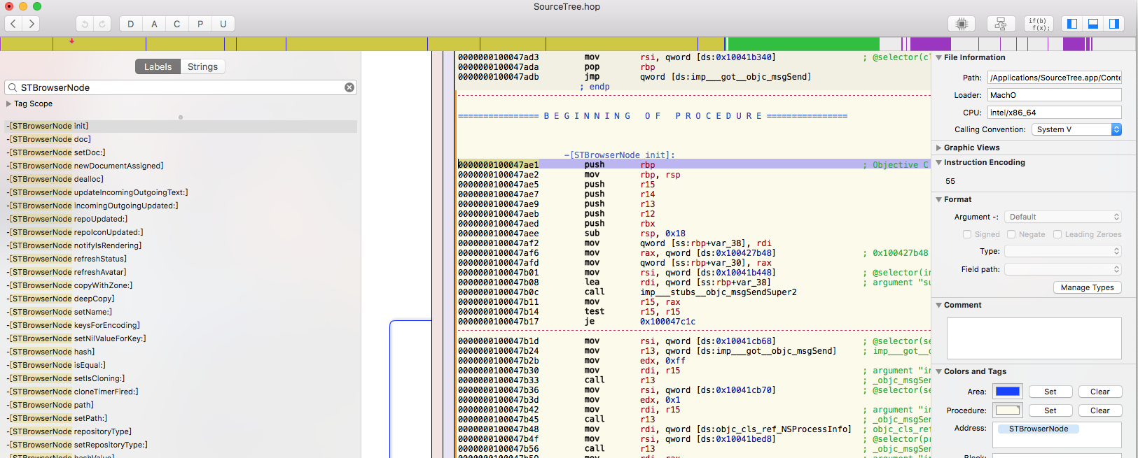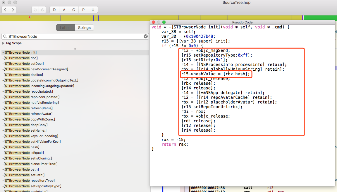 通过hopper 3工具我们进行反编译,查看SourceTree具体Class,直接搜索STBrowserNode关键字。