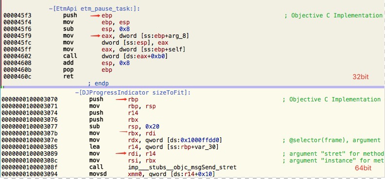test ecx, ecx jz somewhere 如果ecx为零,设置ZF零标志为1,Jz跳转 test rbx, rbx je 0x10000ac78 if(self) { }sub(subtract减法指令)