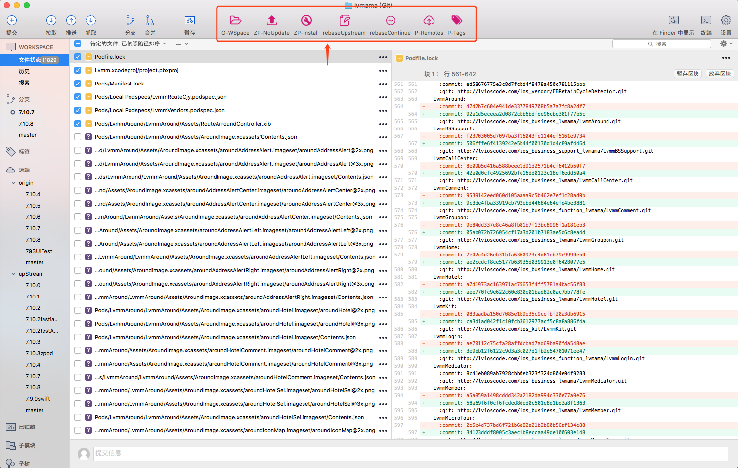• 在Sourcetree中的review code仓库页面中的Toolbar上加入几个按钮,替代CustomAction中的快捷键(见图一)。
