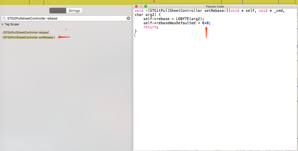 查看源码并分析,点击pull按钮后,弹出的页面是STGitPullsheetController,搜索STGitPullsheetController 的rebase关键字。我为什么会搜索rebase 关键字,是因为勾选用变基替换合并的变基英文单词是rebase。