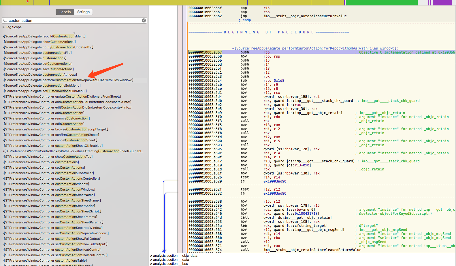 发现SourceTreeAppDelegate performCustomAction方法跟我们执行得方法很像。